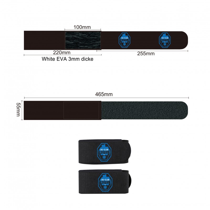 Bedruckte Skibänder Ski Klettbänder mit Ihrem Logo - Skiband mit Logodruck - Bedruckte Skifix Skiclips Skibänder